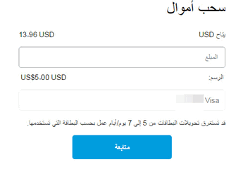 ندخل المبلغ المراد إرساله ومن تم نضغط على متابعة في الأسفل وسيتم إرسال المبلغ